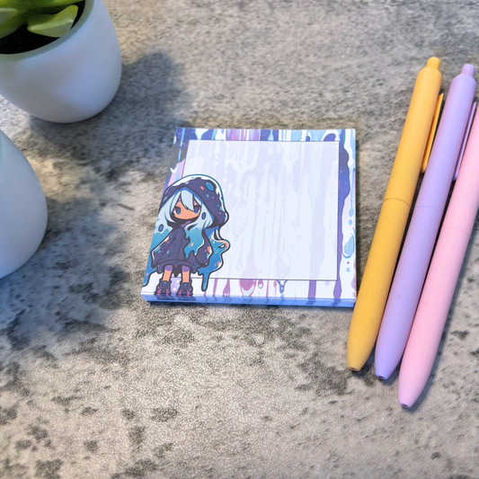 Kawaii Slime Girl Memo Pad, Purple and Teal