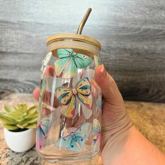 Coquette Moths and Bows Glass Iced Coffee Cup