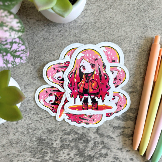 Anime Slime Girl Sticker, Pink and Orange 3" or 2"