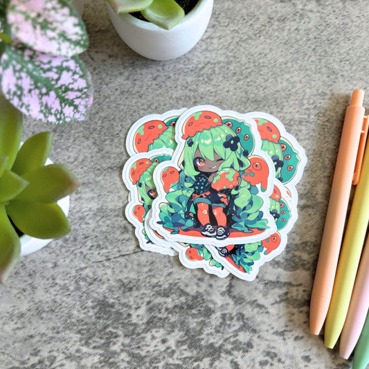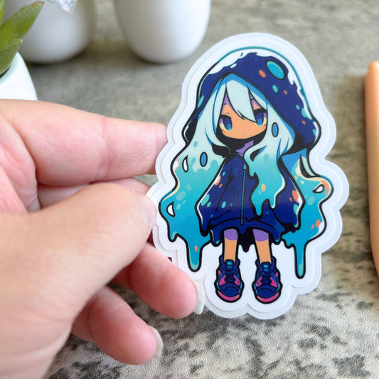 Anime Slime Girl Sticker, Teal and Green 3" or 2"