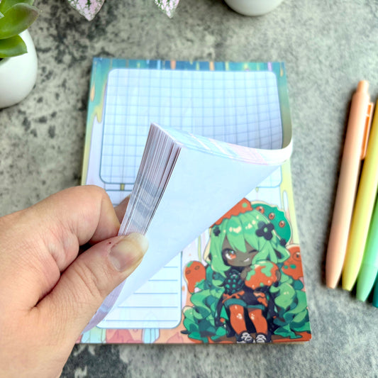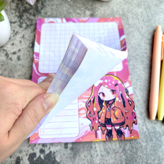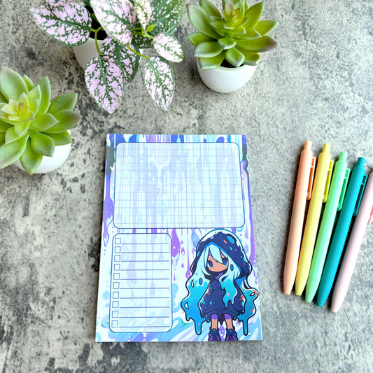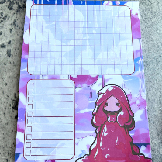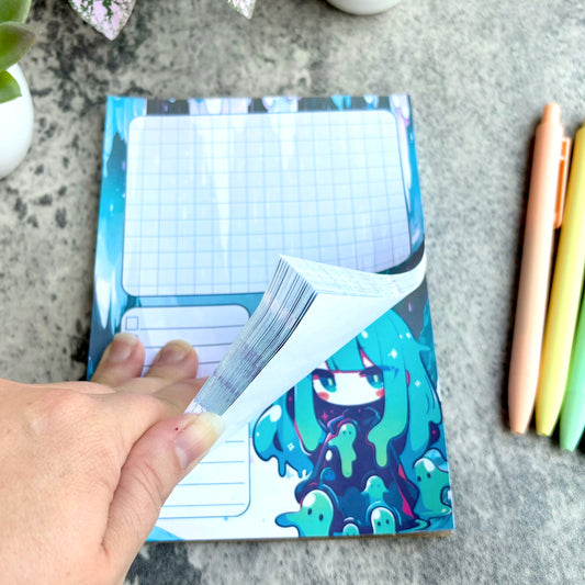 Kawaii Slime Girl Memo Pad, Purple and Teal