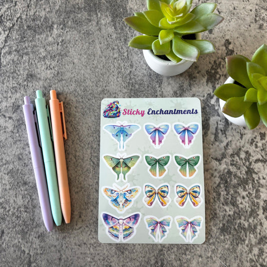 Cute Coquette Bows and Moths Vinyl Sticker Sheet
