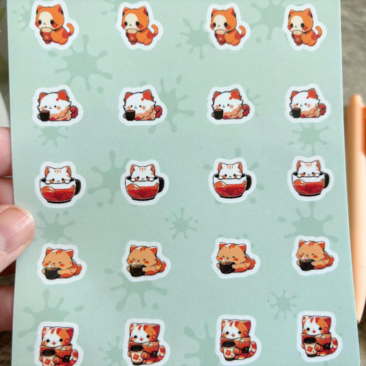 Tiny Sticker Set, Cute Cats with Autumn Drinks