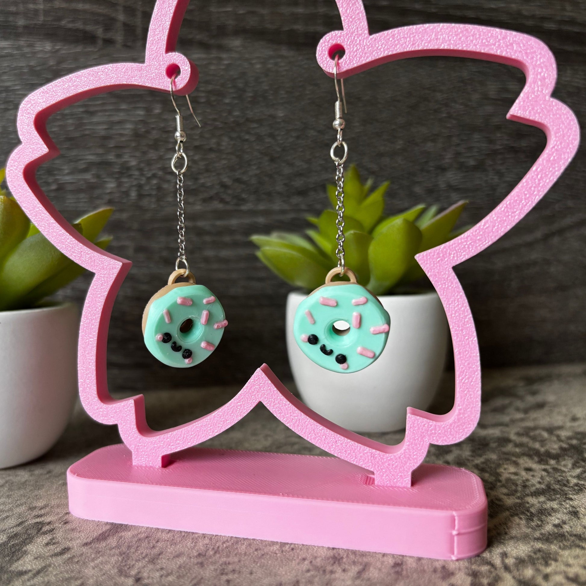 Sweeten up your style with these adorable donut earrings! Each pair features a tiny frosted donut charm, 3D printed in-house and handmade into lightweight dangling earrings. Fun, colorful, and full of personality, they’re a perfect pick for everyday wear, gifting, or adding a playful touch to your outfit.